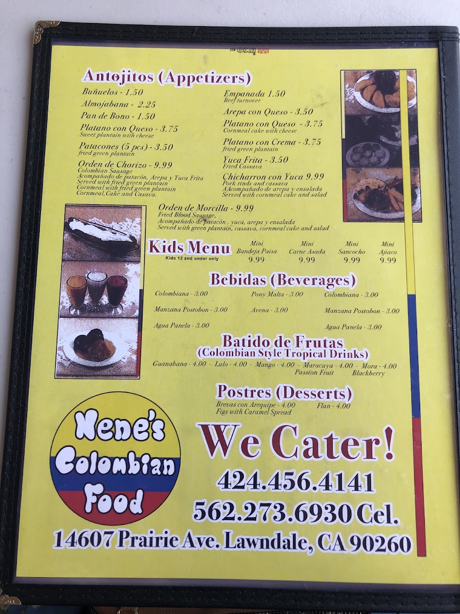 Nene's Colombian Food Menu