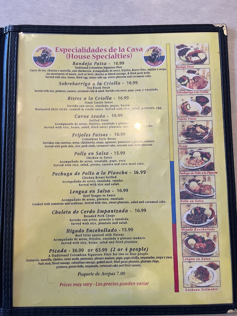 Dishes like Bandeja Paisa, Ajiaco Bogotano, and Arepa Con Queso highlight the menu’s focus on authentic regional specialties that are perfect for lunch or dinner. These options deliver a mix of savory meats, rice, beans, and fresh accompaniments, creating a filling and balanced experience that mirrors the spirit of Colombian comfort food.
